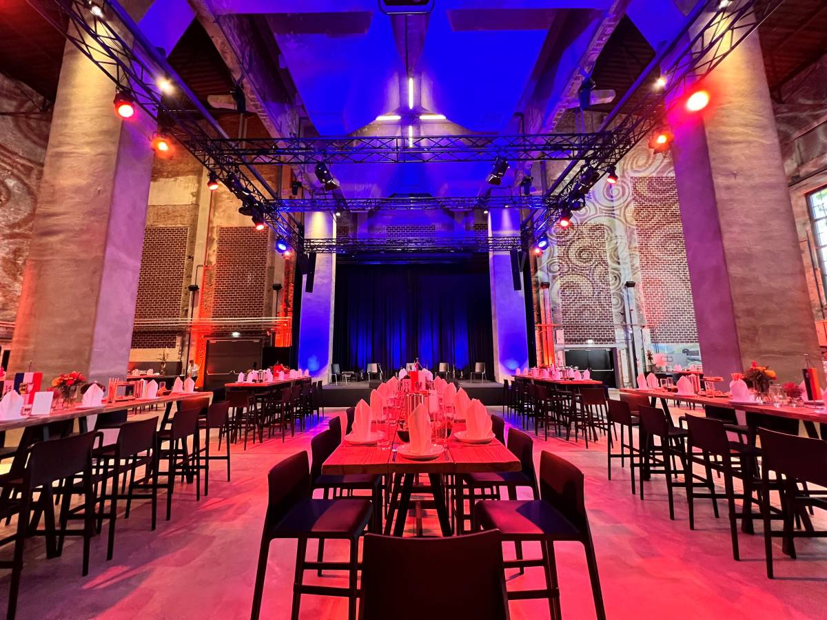 Mit einer Größe von etwa 700 qm ist der KESSELSAAL unser größter Veranstaltungsraum und gleichzeitig das Herzstück der ZENTRALHEIZE. Die 15 Meter hohe Decke und die erhaltenen Kohlenschütten aus der Zeit als Heizkraftwerk tragen zusammen mit den rohen Böden und nackten Ziegelwänden zu einer industriellen Atmosphäre bei und bieten eine besondere Kulisse für Ihr Event in Erfurt.